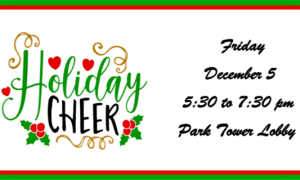 Celebrating the diversity of Park Tower residents with wine, desserts, and finger food appropriate to the season. If you’ve got a favorite recipe and would like to contribute, please do! Email us at ptcasocial@rcn.com by December 1st to let us know. Thanks! For comfort, expanded to both sides of the Lobby and, as always, free for […]