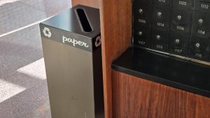 “There are 2 disposal boxes in the lobby across from…[and next to] the mailboxes. One is for waste and the other for paper. They are clearly marked….It’s just one of my pet peeves; paper that can be recycled is being thrown into the waste bucket and visa versa.”