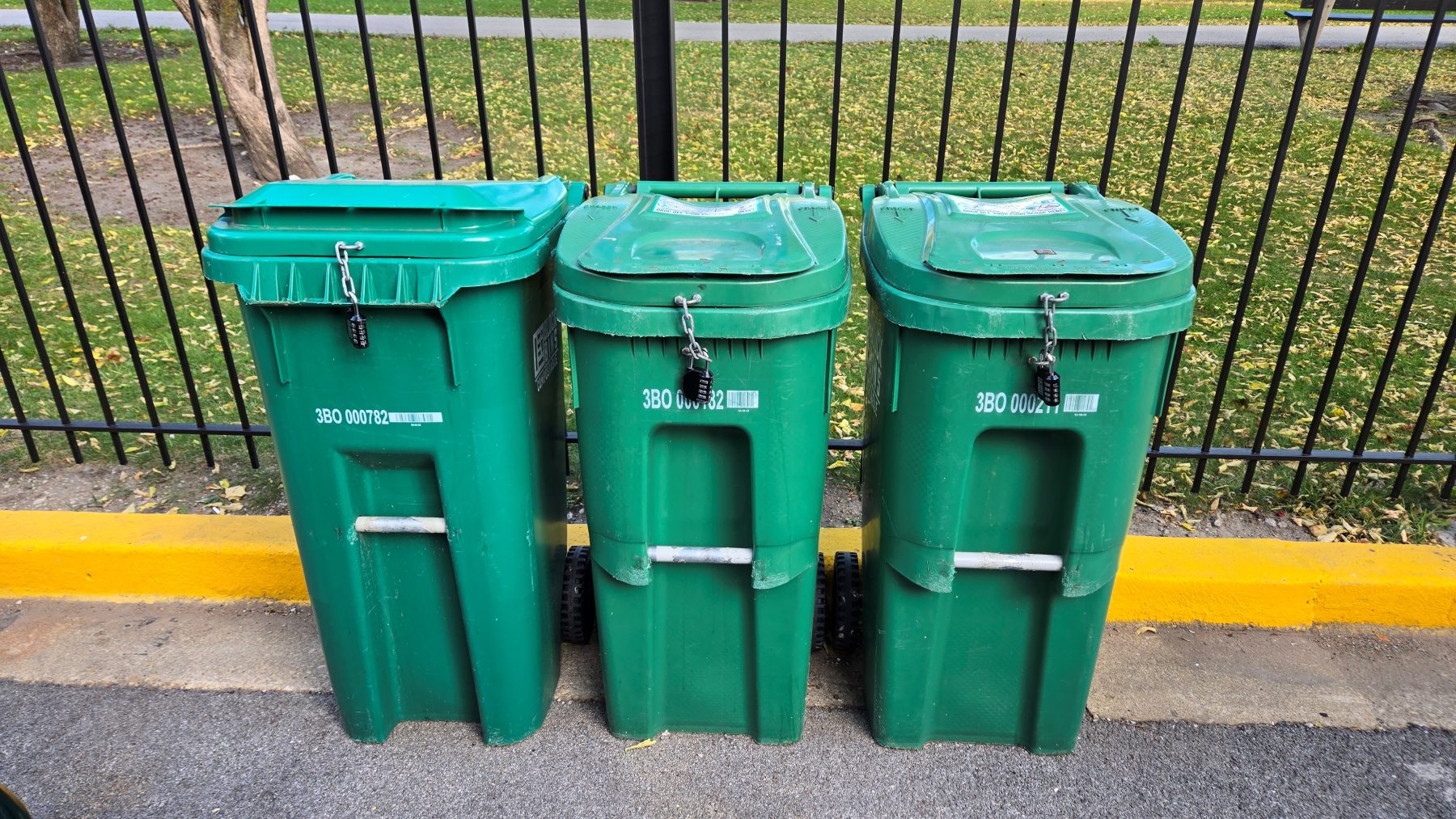 5. When service is underway, and your food scraps are in paper bags or BPI certified compostable bags, you will use a 4 digit code (that either Management or Block Bins will provide) to unlock one of the green bins on the back dock and deposit your waste: